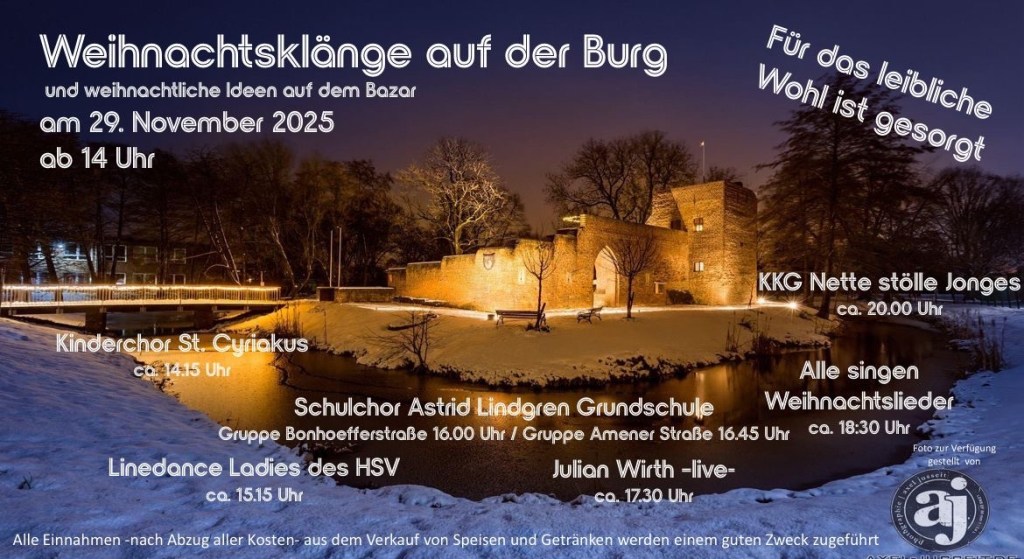 Gestartet wird am Samstag, den 29.11., wo unsere Bigband um 20 Uhr Teil des musikalischen Programms des Adventsmarkts auf der Hülser Burg ist.