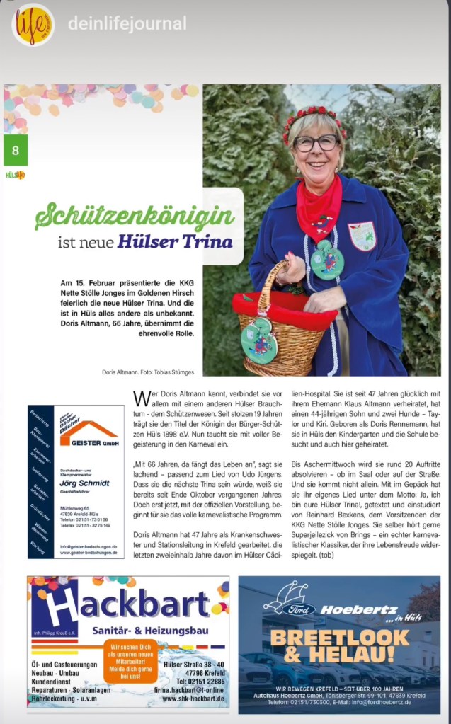 Da ich eine echte Hülserin und viel im Ort unterwegs bin, ist es eine Ehre für mich, dieses Amt für Hüls und den Verein zu übernehmen.